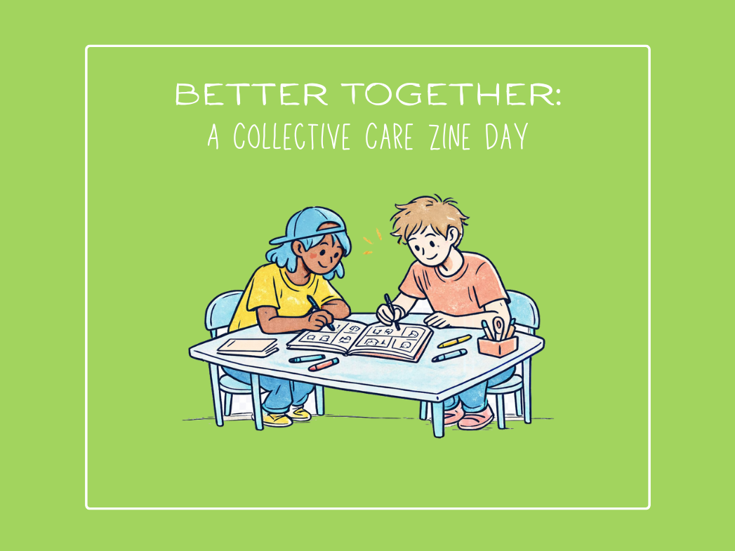 Discuss the difference between self-care and collective care and why both are important in their own ways during a one-day workshop focused on caring for each other and our communities. Participants will create a community zine together through collage, using images and art to represent connection, belonging, and why their community is important to them, with all pages coming together as a shared booklet.
